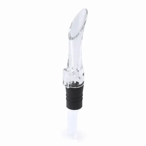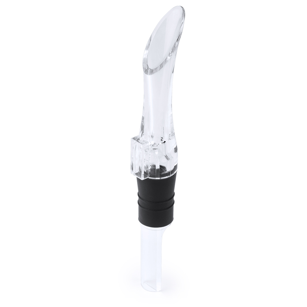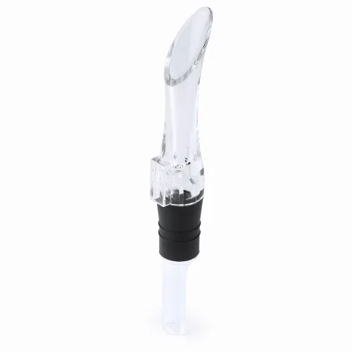 Wine aerator with transparent acrylic material body and safety adjustment.