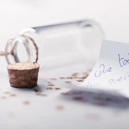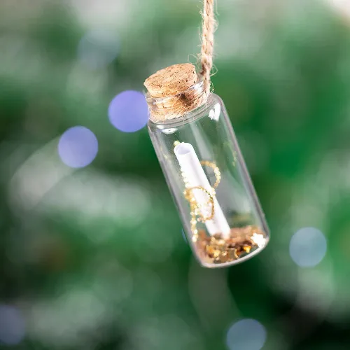 Including a paper parchment and a glass bottle. With lid and hanging ribbon, presented in a white individual box.