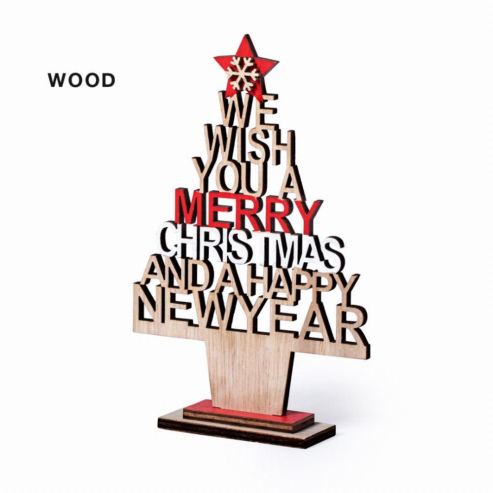 Eye catching, wooden Xmas tree with die cut message.