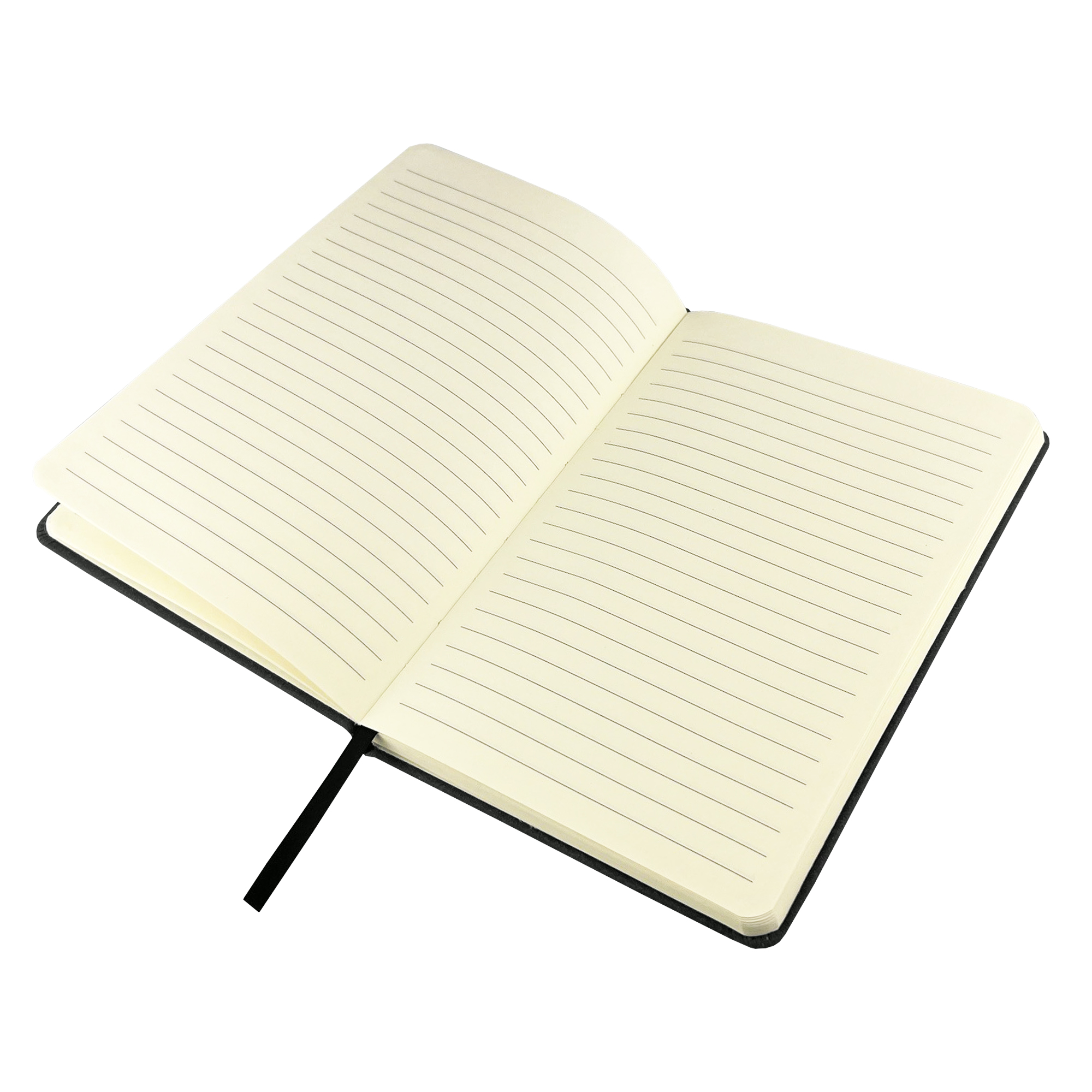High quality medium size A5 notebook with a soft PU paper look cover. Comes with book mark ribbon and 96 leaves 192 pages of lined paper. NFC is available as an optional add-on for this product.