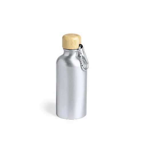 Aluminum body with matte finish and bamboo lid with matching color carabiner for portability. BPA free and presented in an attractive eco-design box.