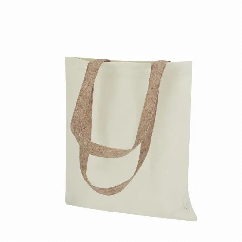 Bag of nature line in resistant cotton of 180g/m2 and original handles in natural cork of 70cm, reinforced.